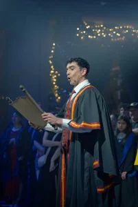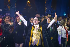Un vals de bienvenida, shows en vivo, desafíos entre casas, pasarela mágica, espacios temáticos para fotos y un mercadillo digno de Hogsmeade. Todo diseñado para que los fans vivieran su propia noche encantada.